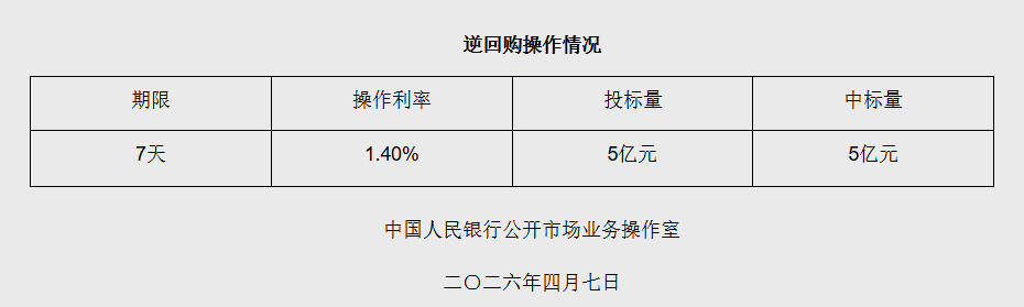 4月7日电 据央止网站新闻,2026年4月7日中原群众银止以牢固利率、数目投标体例启铺了5亿元7天期顺归买掌握,齐额知足了1级业务商需要。详细环境以下: